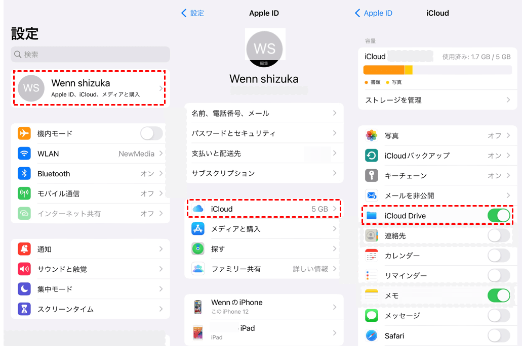 iCloud Driveがオンになっているかどうかを確認するには、iPhoneの設定アプリ>「お名前」をタップ>「iCloud」をクリック>「iCloud Drive」の横のスイッチをオンにします。