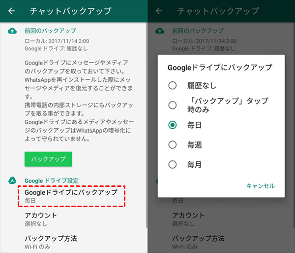 WhatsAppメッセージをGoogleドライブにバックアップする手順