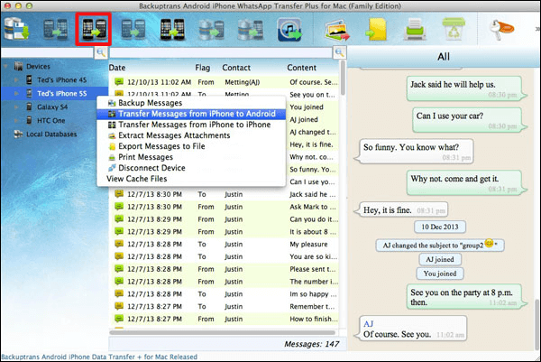 iPhoneからAndroidにWhatsAppメッセージを転送する手順
