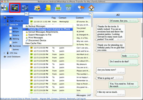 Backuptransは、AndroidとiPhone間のデータ転送を目的としています。AndroidからiPhoneへの転送とiPhoneからAndroidへの転送の2つのバージョンがあります。したがって、必要に応じて対応するツールをダウンロードする必要があります。すべてのチャット履歴または選択したメッセージの転送を行えます。また、電話の他のデータの転送もサポートしています。ただし、そのインターフェースは理解しにくいことがあります。