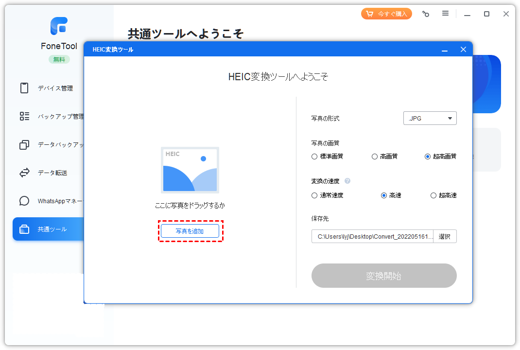 FoneToolはWindows用の無料HEIC JPG/PNG変換ソフトです。