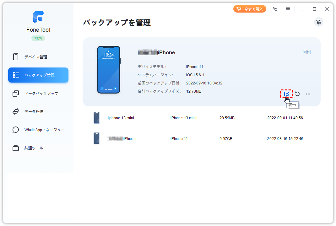 FoneToolでバックアップを管理するには?