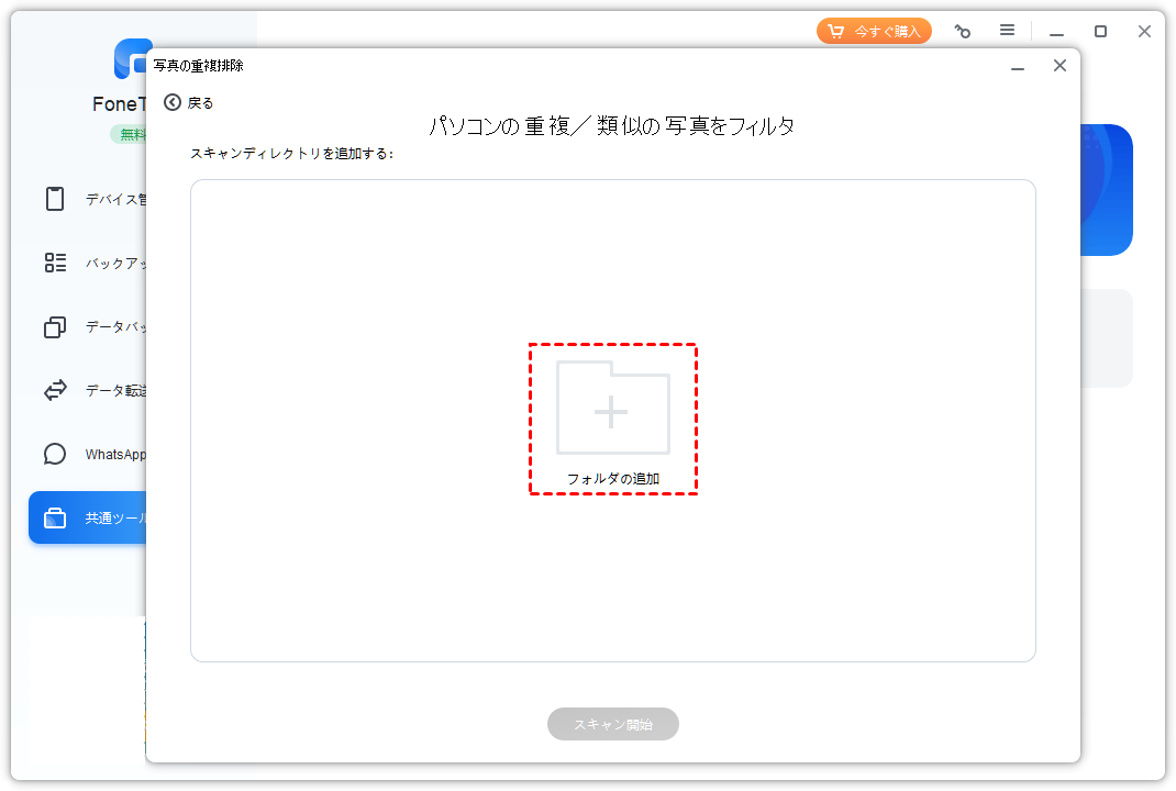 ステップ1:FoneToolホームインターフェイスのツールバーにある「重複写真削除」機能をクリックします。