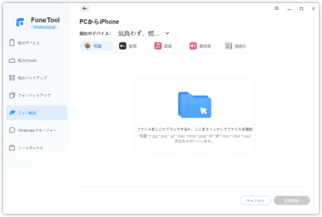 FoneToolは、音楽、写真、ビデオ、連絡先、メッセージなどのデータ管理を効率化するために特別に設計されており、iDeviceとコンピュータ間、さらには複数のiDevice間でのデータ転送をサポートします。