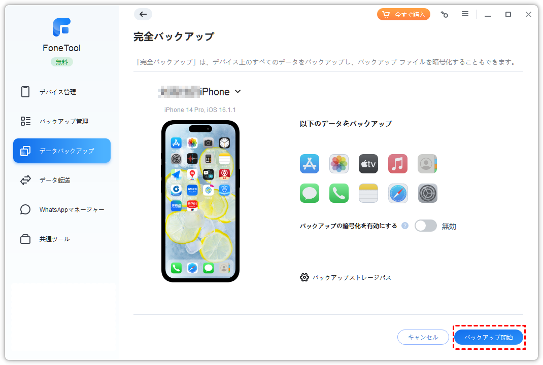 方法1. FoneToolでiPhoneをPCにバックアップする