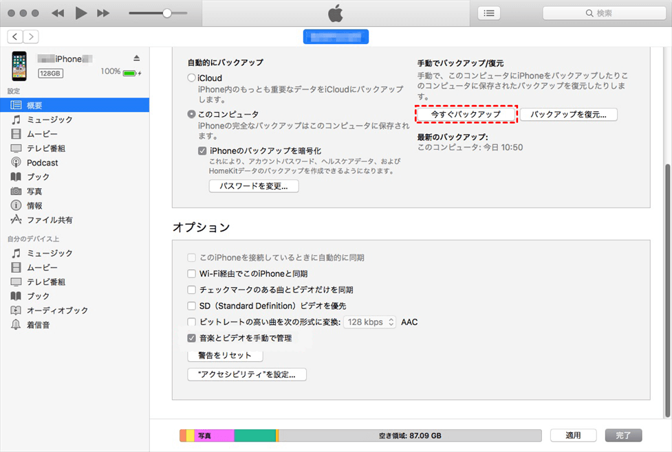 iTunesは公式ツールです。当初は購入した音楽やビデオを管理するために設計されました。現在では、iPhoneの設定を含むほとんどのデータを1つのフォルダにバックアップする方法も提供されています。iTunesでiPhoneをバックアップする方法が気になる方は、以下のステップに従ってください。