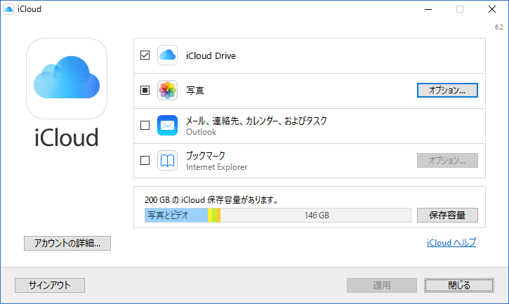 ステップ 2. パソコンでiCloudアプリを開き、「写真」の隣にある「オプション」をクリックします。