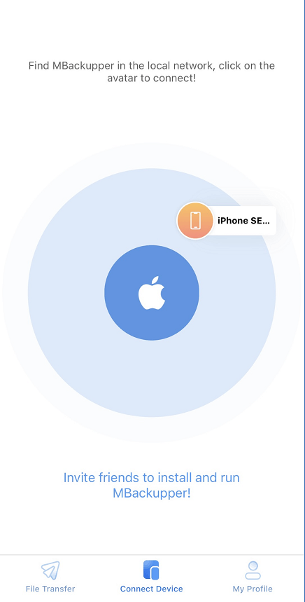 ステップ 2. ソースiPhoneでFoneToolを開き、「Connect Device(デバイスを接続)」をタップします。そして、音楽を転送したいターゲットiOSデバイスの名前をタップしてください。