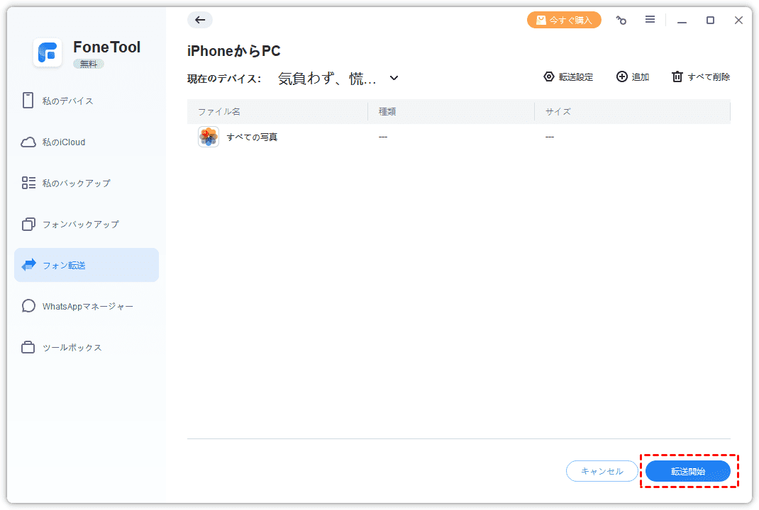 iPhone上の写真が失われた場合、iPhoneに写真を転送することができます。それに、FoneToolはiPhoneの写真をPCにバックアップすることで、データ保護に重要な役割を果たすことができます。