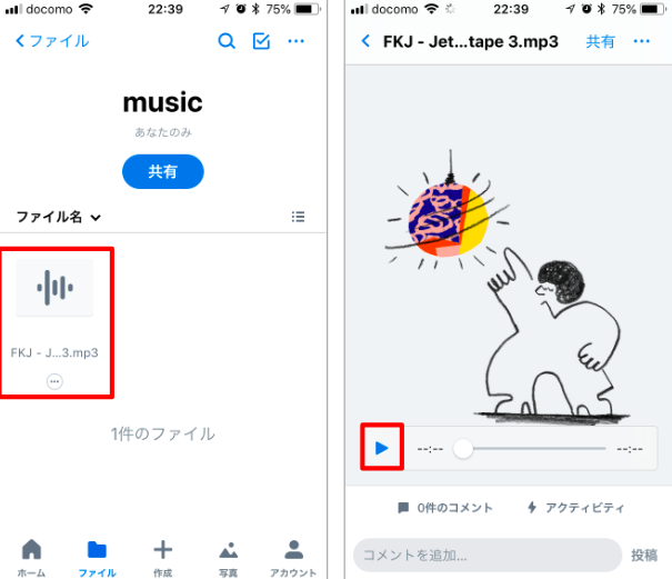 ステップ 2. iPhoneで、App StoreからDropboxをダウンロードして、パソコンで使ったのと同じアカウントでサインインします。そして、このアプリで音楽を聴くことができます。