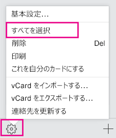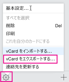ステップ 3. 歯車アイコンをもう一度クリックして、「vCardをエクスポートする」オプションを選択し、iPhoneの連絡先をVCFファイルにエクスポートします。