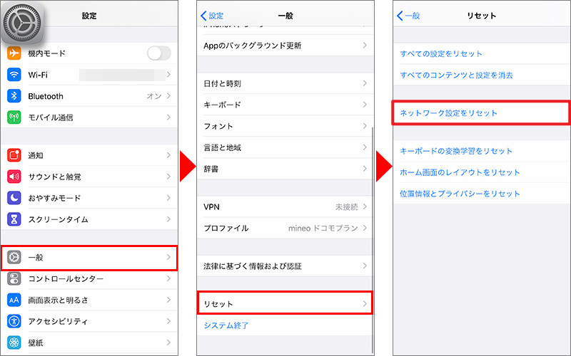 「ネットワーク設定をリセット」は、すべてのネットワーク設定/キャッシュを消去し、デフォルトのネットワークオプションに復元する機能です。この機能はiOSアップデート後Wi-Fiが切れる問題の解決に役立ちます。ネットワーク設定だけがリセットされ、他のデータは影響を受けないので、心配しないでください。