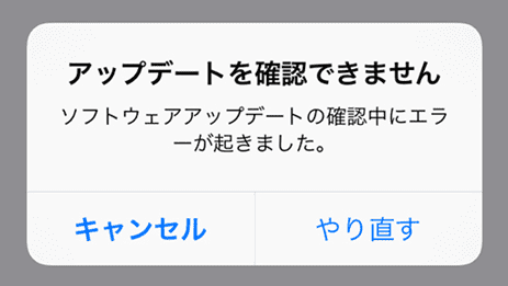 iPhoneのアップデート中にWi-Fiの接続が切れた場合、「アップデートを確認できません。ソフトウェア・アップデートの確認中にエラーが起きました」や「アップデートをインストールできません。ソフトウェア・アップデートにはネットワーク接続が必要です」といった警告文が表示される場合があります。