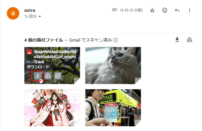ステップ 3. 「受信トレイ」から該当のメールを開き、添付ファイルにカーソルを合わせて「ダウンロード」ボタンをクリックします。