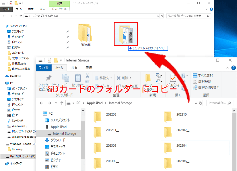 方法2:WindowsエクスプローラーでiPhoneの写真をSDカードに移す
