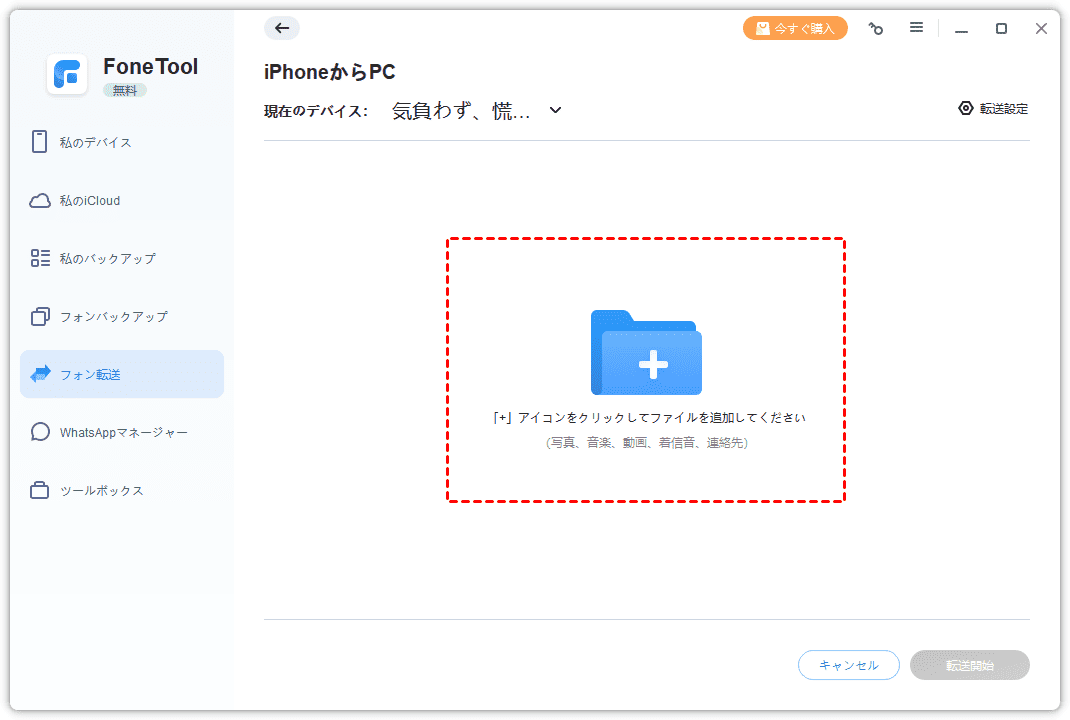 ステップ 4. FoneToolをインストールして起動し、ツールバーの「フォン転送」>「iPhoneからPC」をクリックします。