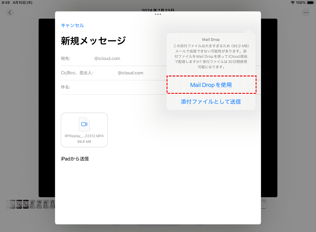 大容量動画をメールで送信しようとすると、動画が大きすぎて送信できないという通知が表示されます。しかし、メールでiPadから動画を送ることができないというわけではありません。AppleのMail Dropという機能を使えばメールで最大5GBまでの動画を送ることができます。