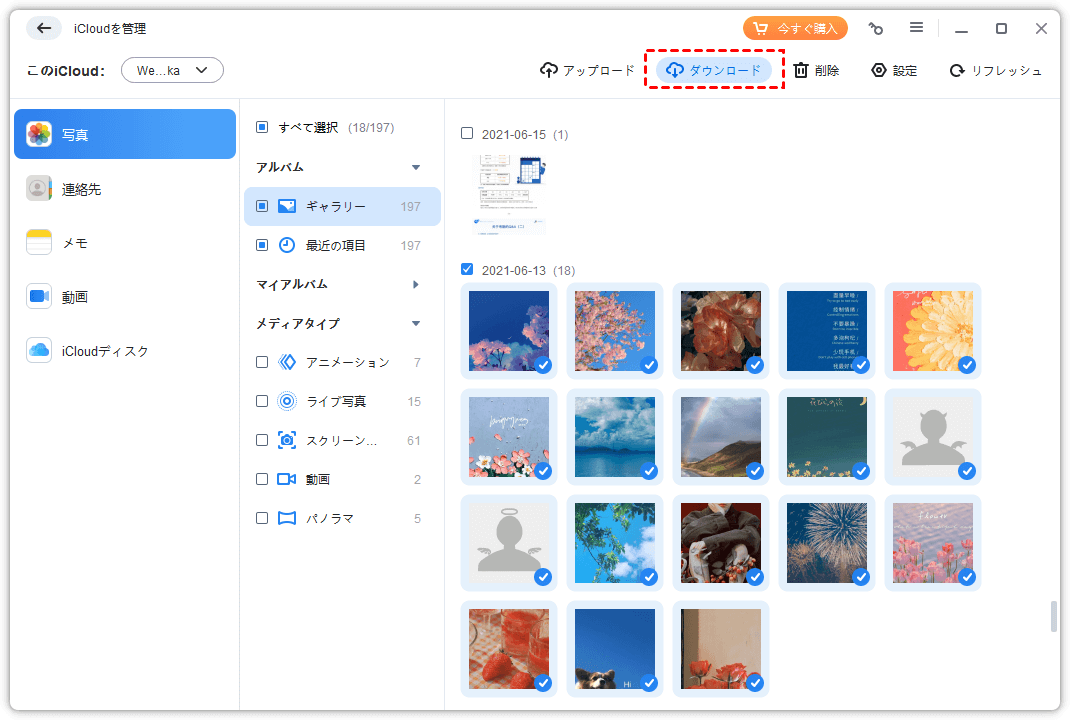 FoneToolはオールインワンツールで、iCloudデータを管理する機能も提供します。異なるタイプのファイルをアップロード、ダウンロード、削除することができます。