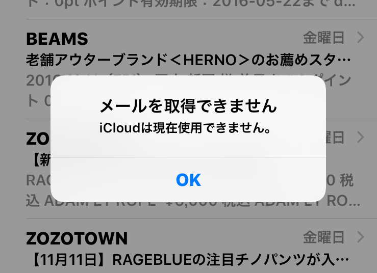 iCloudは現在使用できません