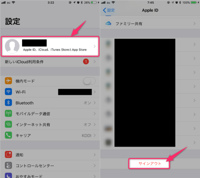 方法2. iCloudアカウントをサインアウトして再度サインインする