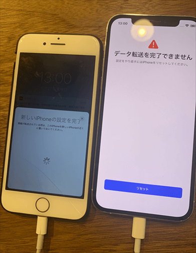 古いiPhone(6s・64GB)から新しいiPhone(14・128GB)へクイックスタートによるデータ移行をやりましたが、残り3分のところで、「データ転送を完了できません」になってしまいます。何度やってもできません。iOSはどちらも16にしています。無線です。有線はコードを買う必要があるので、できれば避けたいです。よろしくお願いいたします
