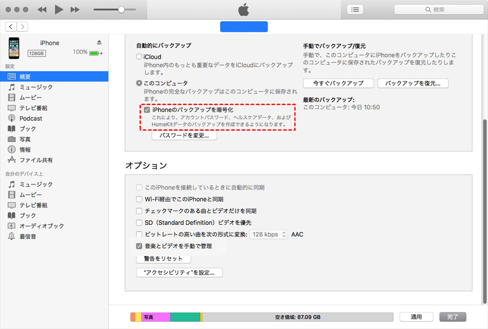 iPhoneをバックアップしている場合、ローカルバックアップを暗号化するかどうかをチェックしてみてください。これは、以前のバックアップが暗号化されているかどうかによります。つまり、iPhoneデータのプライバシーに対する考え方はそれぞれ違いますが、iTunesはどちらか一方しか認めたくないので、iPhoneバックアップの破損が起こります。
