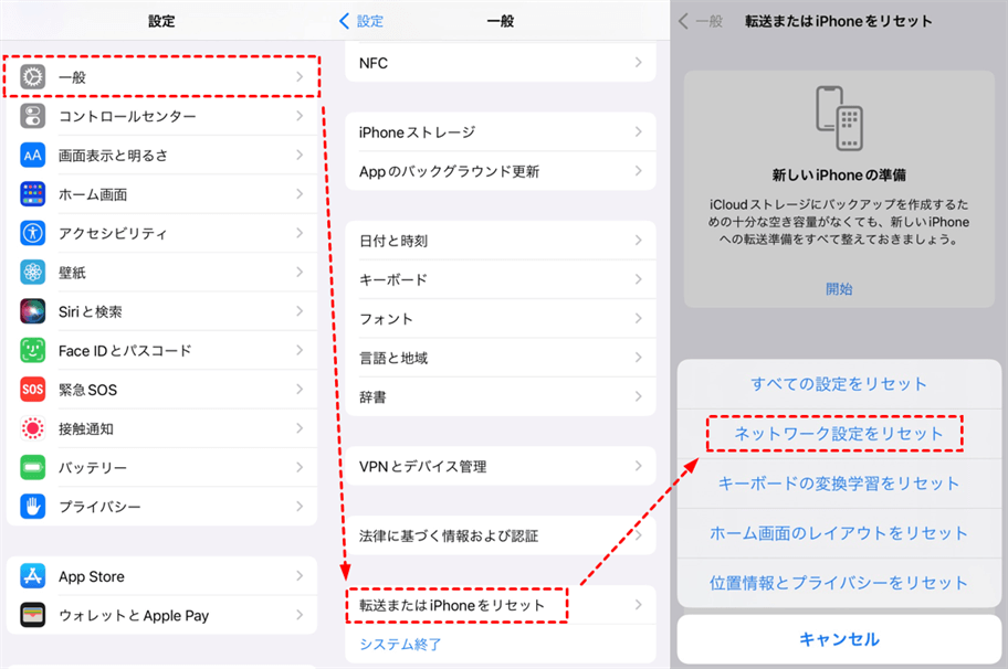 ステップ 2. 下にスクロールし、「リセット」>「ネットワーク設定をリセット」をタップします。