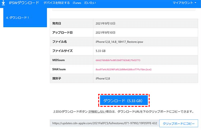 または、Apple IPSWを利用することもできます。パソコンに最新バージョンのiTunesがあり、「iPhoneを探す」機能がオフになっていることを確認してください。