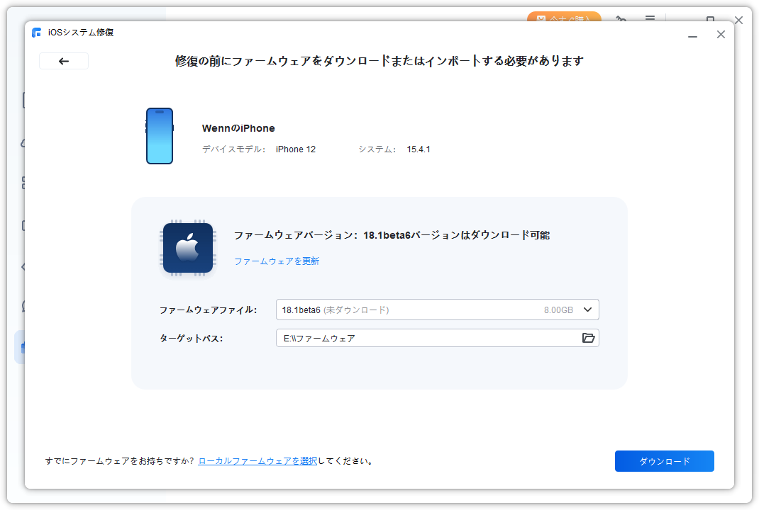 ステップ 5. FoneToolはiPhoneの以前のファームウェアファイルをダウンロードして、エラーを修正するために「修復開始」をタップします。