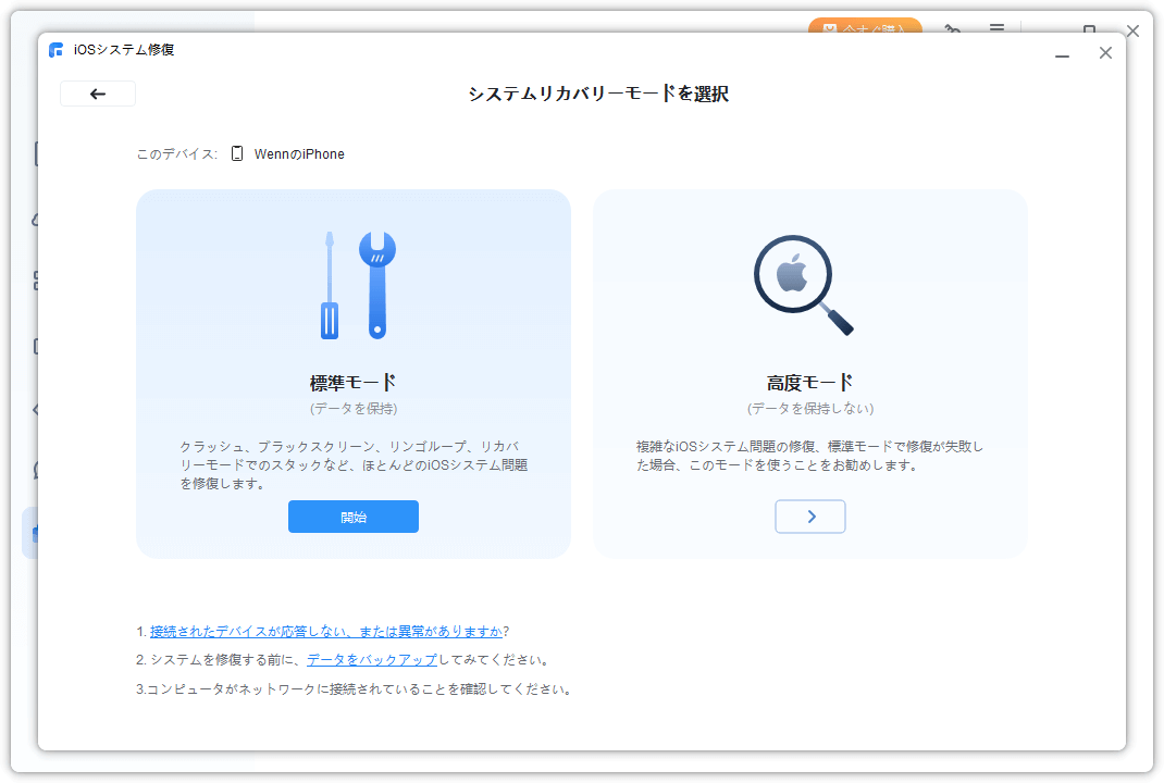ステップ 4. 「標準モード」を選択>「開始」をタップして続行します。