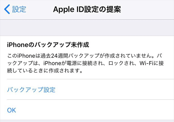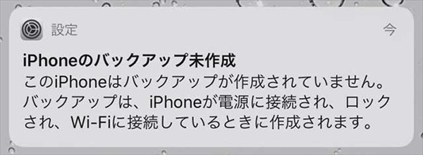 「iPhoneのバックアップ未作成」という通知が表示される