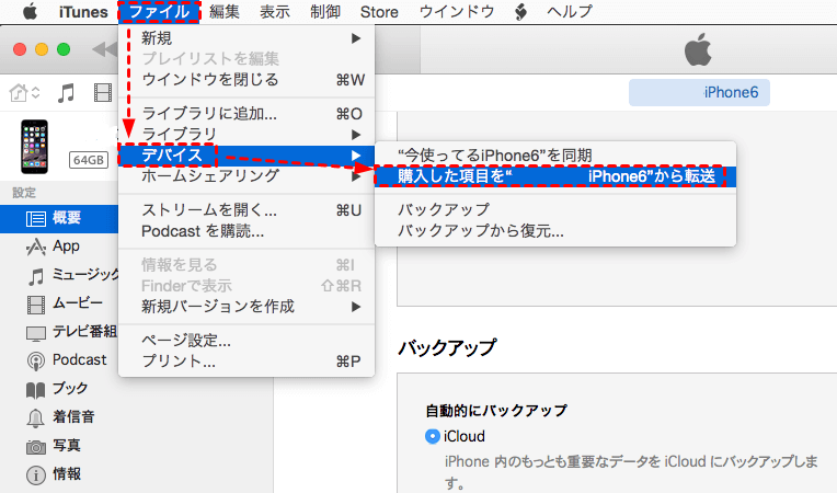 ステップ 3. 「購入した項目をiPhoneから転送」を選択します。