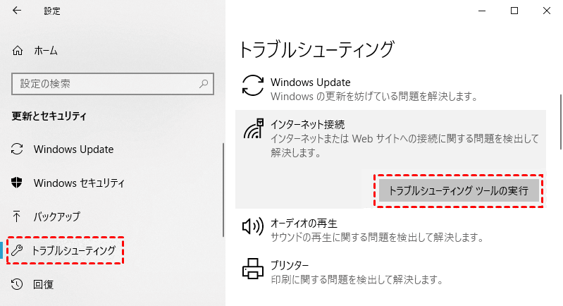 ステップ 2. 「追加のトラブルシューティング」>「インターネット接続」をクリックします。
