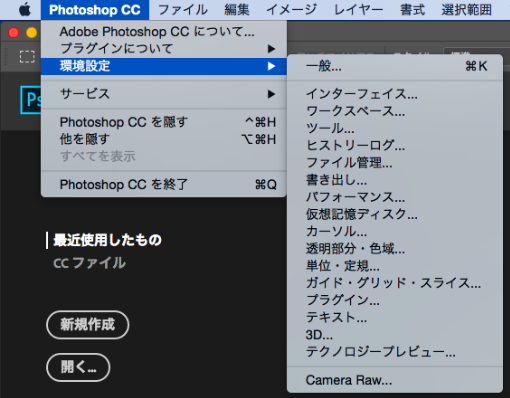 ステップ 1. 「Photoshop CC」→「環境設定」→「Camera Raw」を選択します。