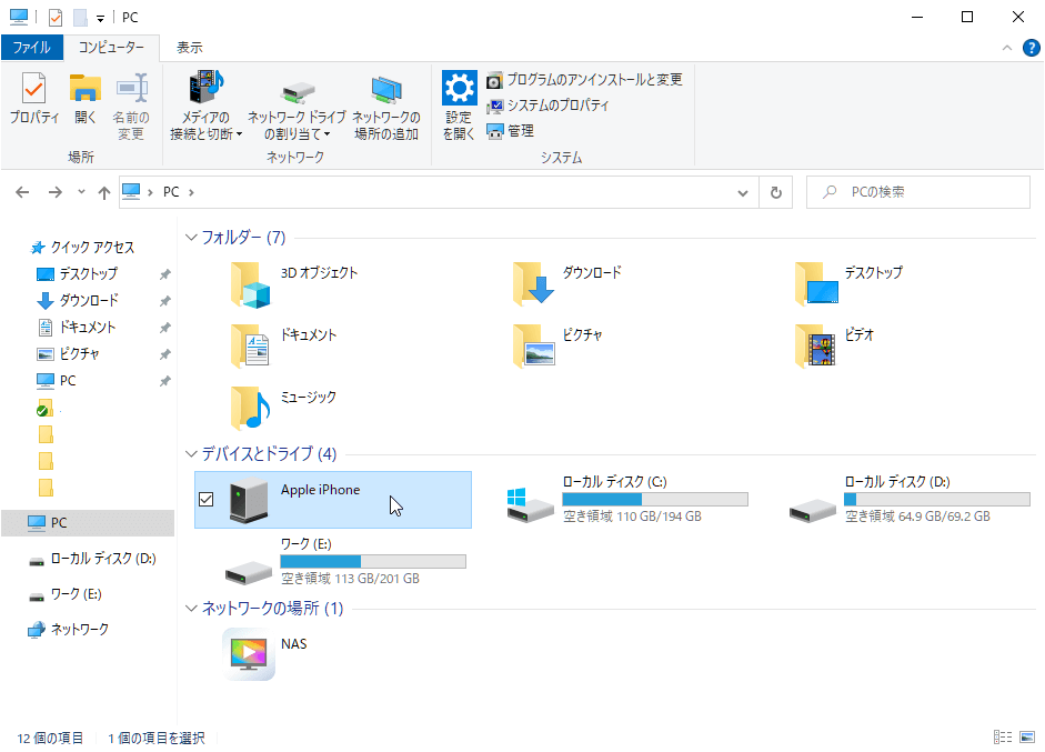 エクスプローラーでiPhoneの写真をPCに取り込む手順