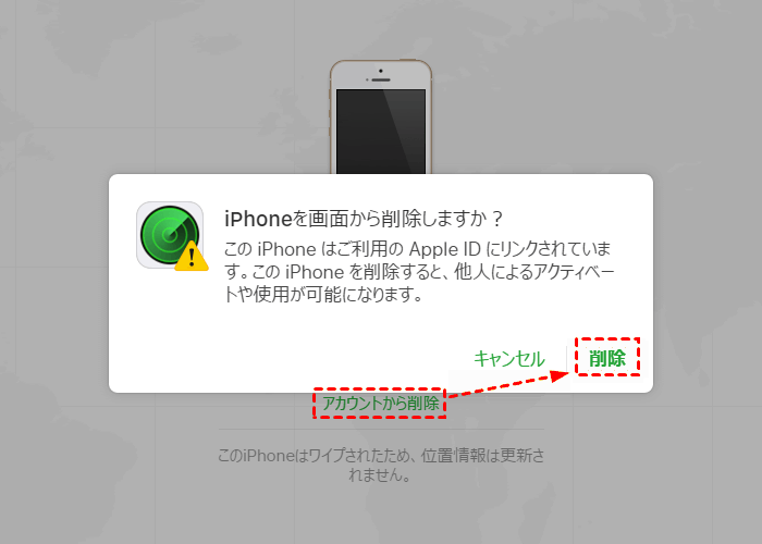 ステップ 3. 「iPhone/iPadを削除する」をクリックして確認>「アカウントから削除」をタップ>「削除」をタップします。