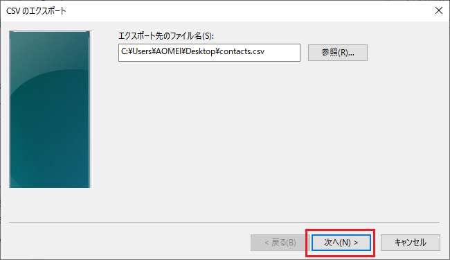 ステップ 2. CSVファイルに名前を付けて、「参照」をクリックし、ファイルの保存先を選択し、「次へ」をクリックします。