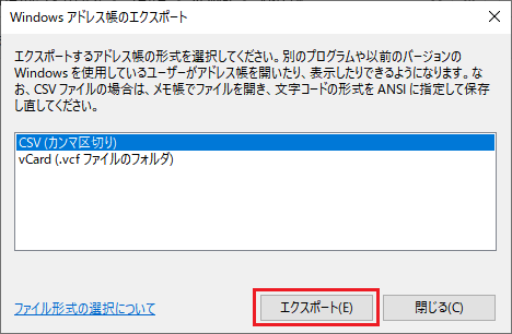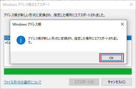 完了すると、「アドレス帳が新しい形式に変換され、指定した場所にエクスポートされました。」ポップアップウィンドウが表示されるので、「OK」をクリックしてウィンドウを閉じます。