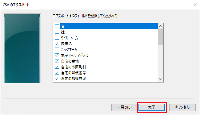 ステップ 3. エクスポートするフィールドを選択し、「完了」をクリックしてエクスポートを開始します。