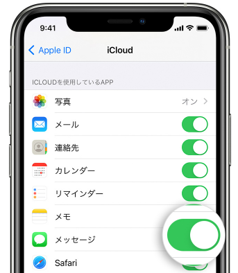 - ワイヤレスでメッセージを転送したい場合、iCloudのメッセージの同期をオンにして、それを行います。
