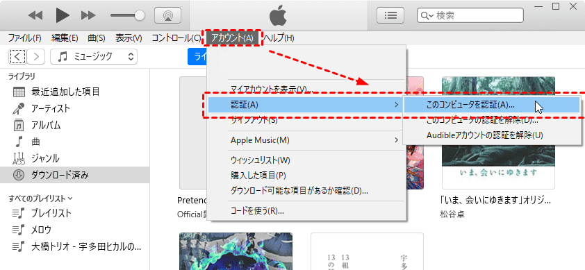 iTunesを使って購入済みのiPadからパソコンに音楽を送る手順: