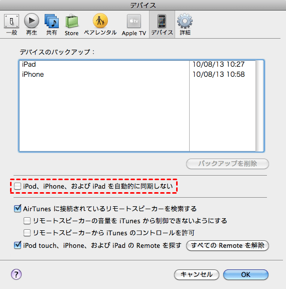 ステップ 2. 「編集」から「環境設定」を開きます。「環境設定」から「デバイス」を選択し「iPod、iPhone、およびiPadを自動的に同期しない」にチェックを入れ[OK]をクリックしてください。これで初期設定は準備完了です。