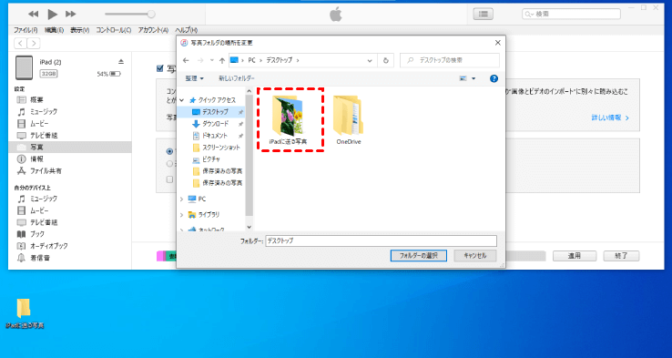 ステップ 5. 転送したい写真のフォルダを選択します。「同期」をクリックすると、iPadへの写真の転送が始まります。