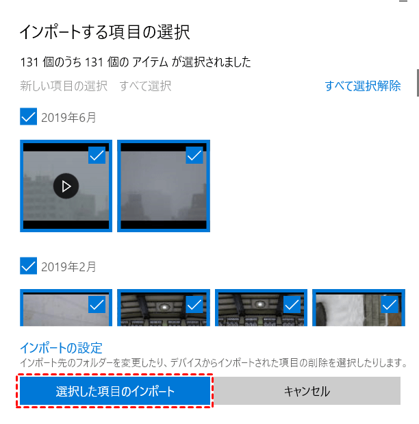 ステップ 5. 読み込みたい写真を選択して「選択項目を読み込む」をクリックするか、「すべての新しい写真を読み込む」をクリックします。