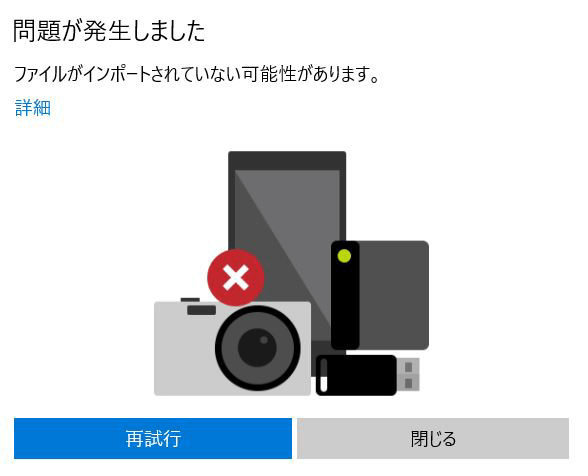 Microsoftフォトで「問題が発生しました。ファイルがインポートされていない可能性があります。」が表示される場合、写真をインポートする時に、アンチウィルスを一時的に無効にしてみてくだい。