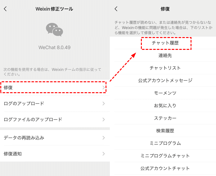 削除されたWeChatメッセージを復元する最も一般的な方法は、WeChatによってリリースされた公式ツールであるWeChat修復ツールを使用することです。しかし、このツールは誤って失われたメッセージを復元するだけで、削除されたメッセージを復元することはできません。そのため、非常に限定的です。しかし、結果はどうであれ、実際に試してみる価値のある方法です。詳しくは以下の手順を参照してください。