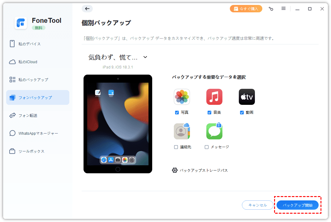 - 完全なデータのバックアップ: FoneToolはiPhoneのすべてのデータをバックアップおよび復元することができます。写真だけでなく、動画や音楽、連絡先などのデータも含めてバックアップすることが可能です。