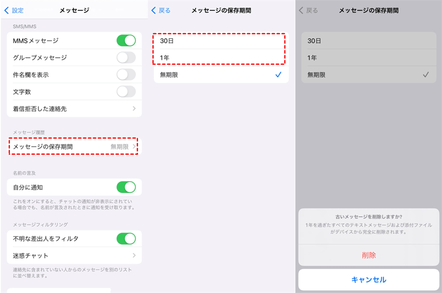将来的にメッセージアプリが混乱しないように、古いテキストメッセージを自動的に削除することができます。