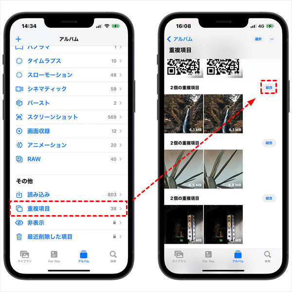 iPhone「重複項目」機能で重複写真を削除する方法
