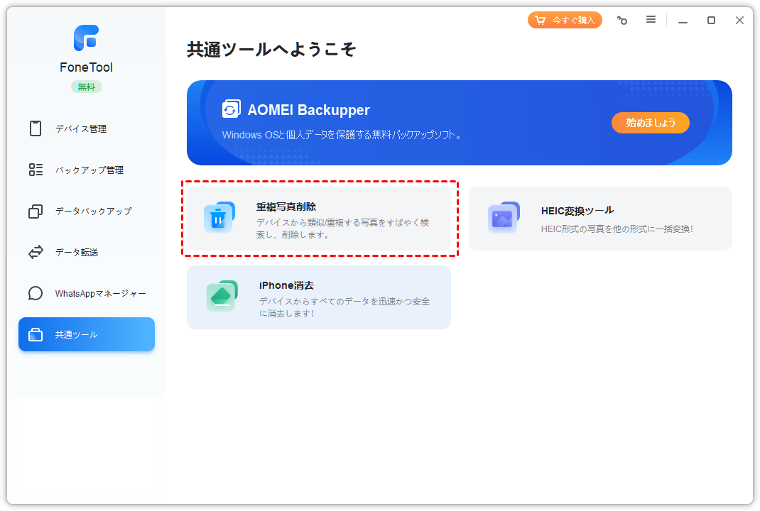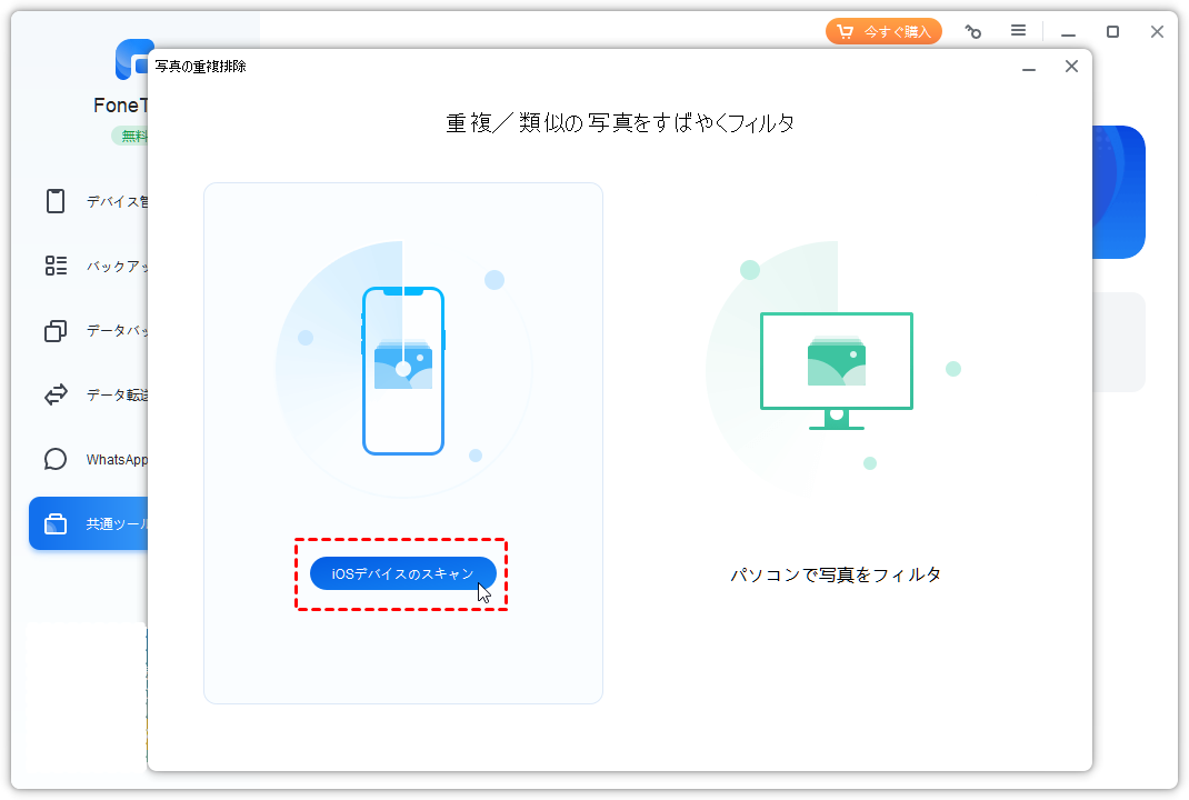 1. FoneToolーiPhoneで重複した写真を一括削除する無料アプリ(推薦)